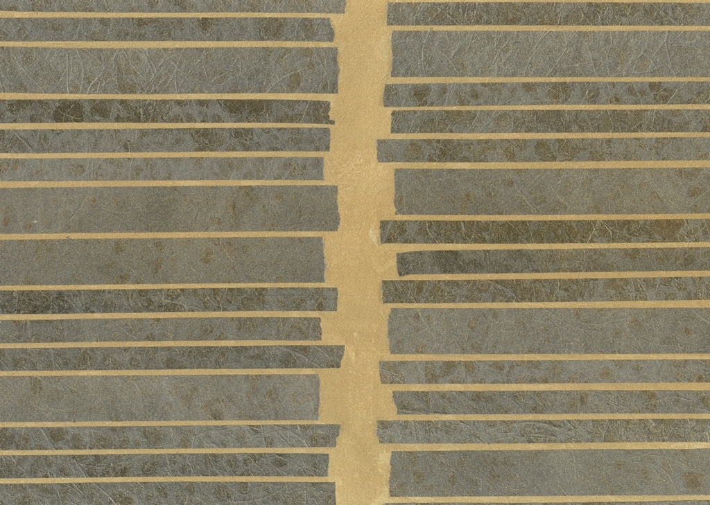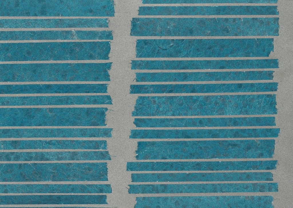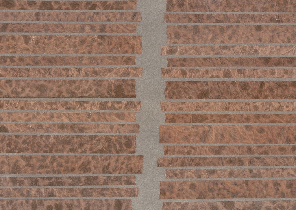 Handmade collages of Japanese paper mixed with banana fibres are the eye-catchers in this new wallcovering collection of Omexco, hence called “Collages”. Small pieces of paper are glued on a non woven backing by skilled craftsmen, either to form a stripe, or a random mosaic, enhanced here and there with a glimpse of metallic foil. The visual result is absolutely stunning. This is not just wall-covering, this is wall-art.